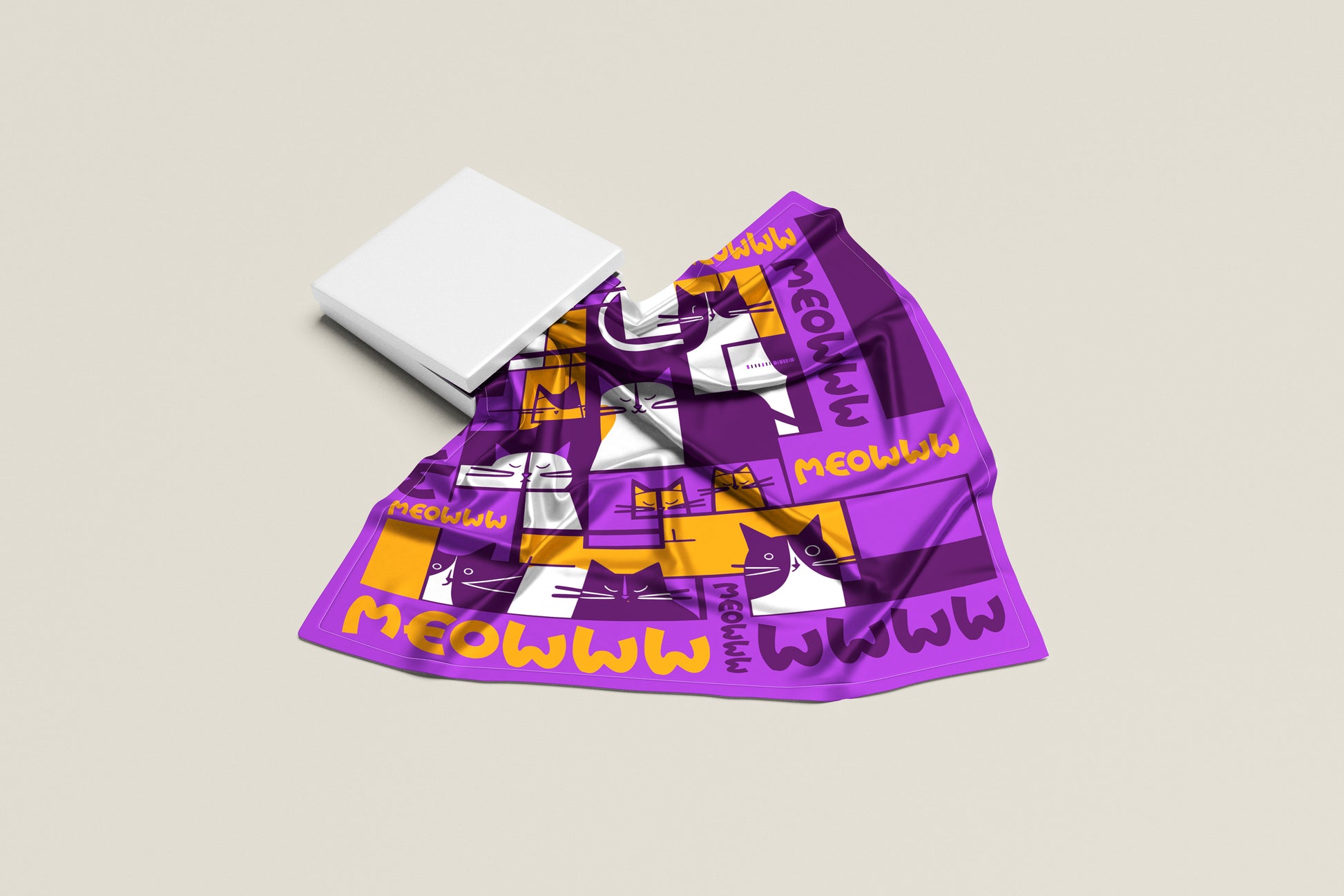 The Meow Party Banadan features a playful cat motif. It's adorned with various masks and musical notes, creating a harmonious blend of fun and creativity. Ideal for events where you want to add a whimsical element.