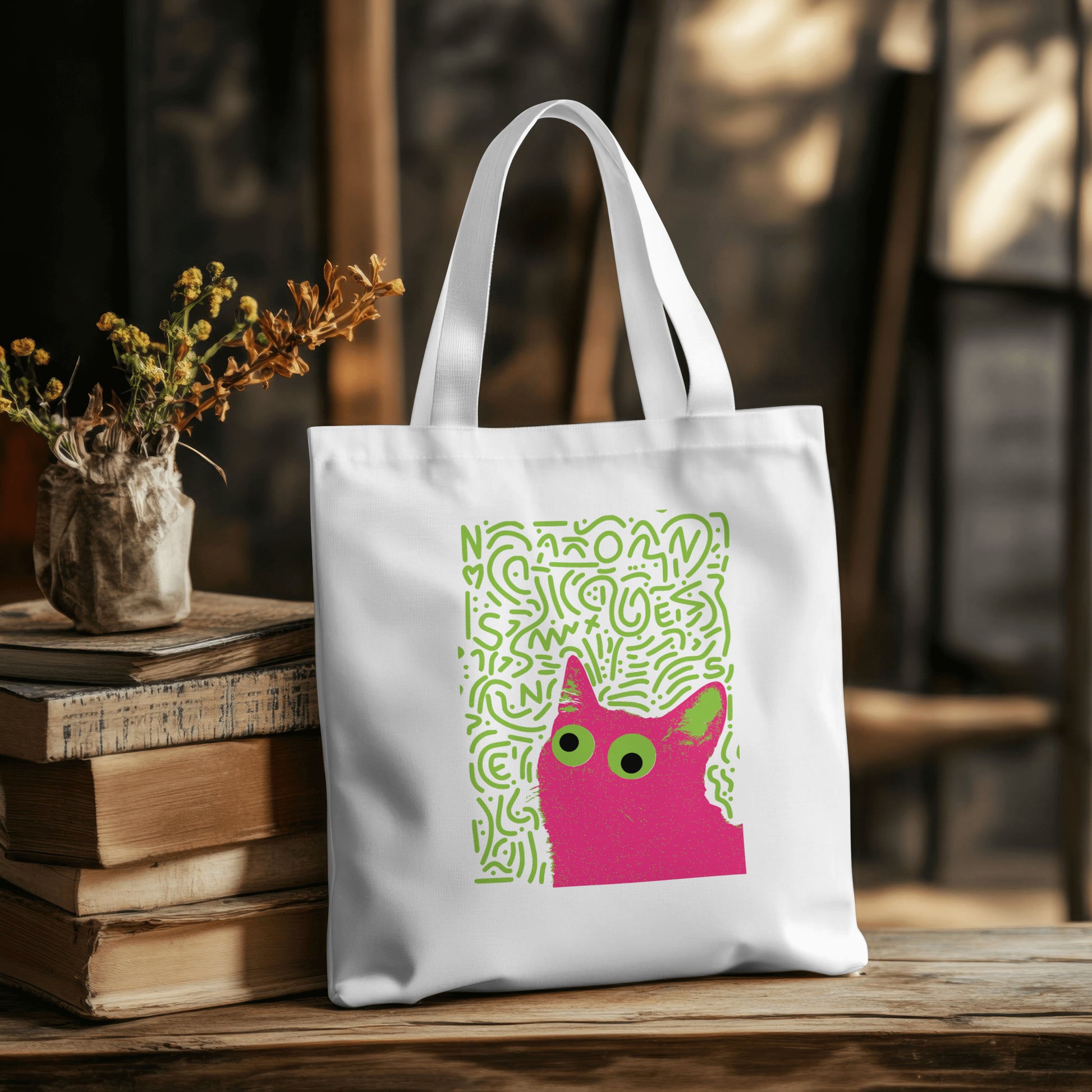 Versatile and Practical: The bag features a playful design that cat lovers will appreciate. Whether you're heading to work, school, or a pet store, this tote bag is a practical choice. Its design ensures you can carry your belongings comfortably and stylishly.